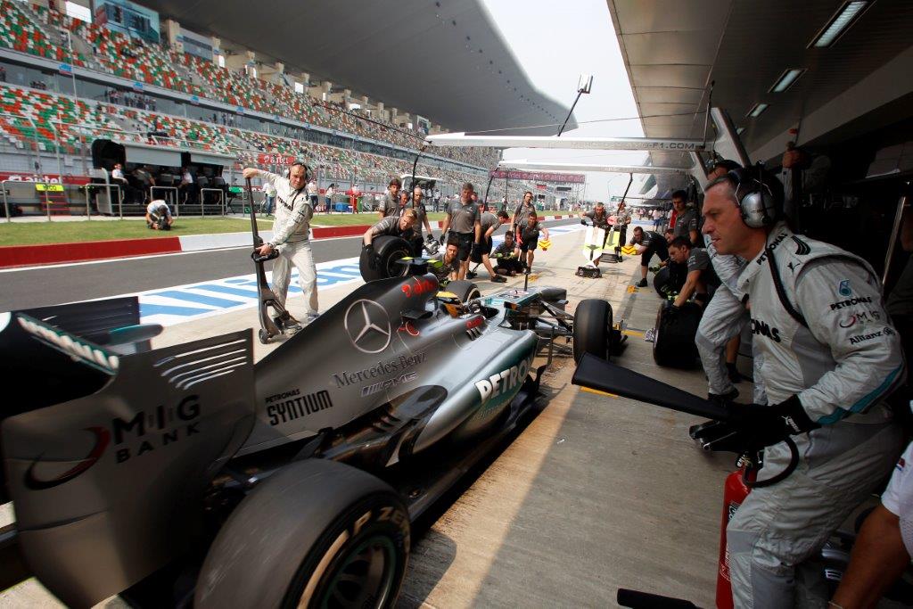 Grand prix Indie 2013 formule 1- tentokrát jsme nahlédli prostřednictvím fotografie J.Křenka do týmu AMG Mercedes Benz Petronas team F1.