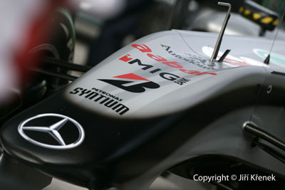 Čumák – přední část vozu vyměnitelná zároveň s předním přítlačným křídlem obsahující velice důležitou součást – trubici , která měří rychlost vozu (podobně jako u letadel). Detail 2010.