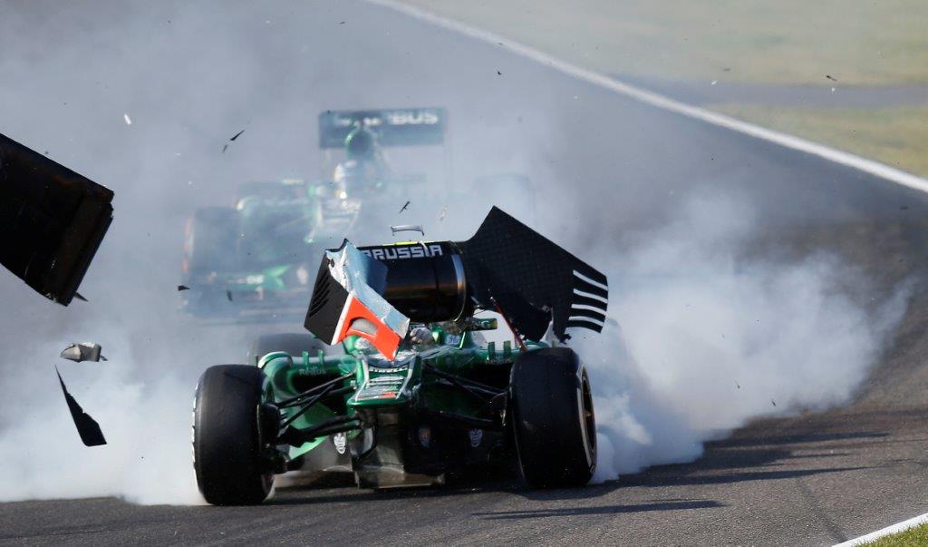 Hned po startu grand prix formule 1 v Japonsku do sebe vrazili Giedo van der Garde Caterham F1 Team a Jules Bianchi m vše se obešlo bez zraněních .