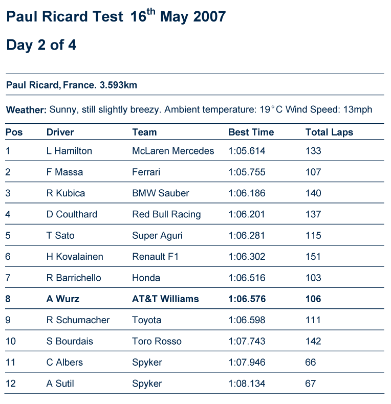 “We had much better weather in Ricard today. Alex Wurz took over from Nico